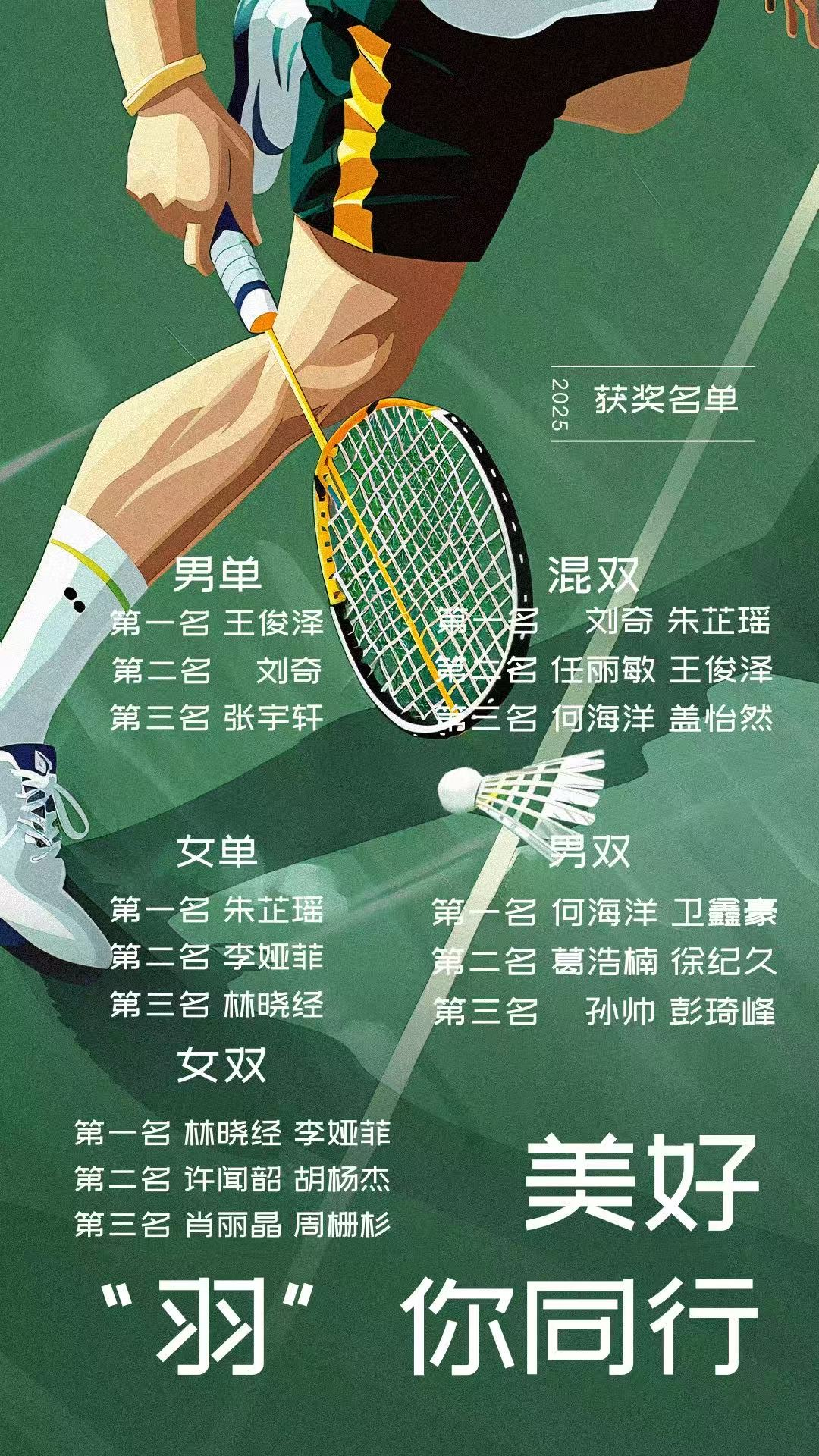 经过比赛激烈的角逐,本次羽毛球赛的最终获奖名单如下:
