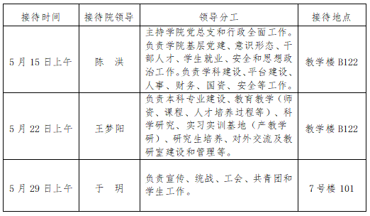 根据《天津体育学院领导干部接待日制度》规定及学院近期工作安排,现将2026年5月院领导接待师生来访安排通知如下。